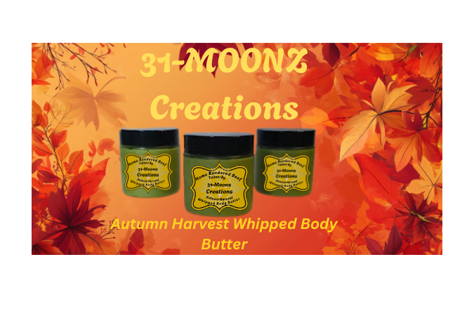 Our Autumn Harvest Whipped Tallow Body Butter – Autumn Edition combines the rich, skin-loving benefits of grass-fed tallow with a warm, comforting blend of natural essential oils like cinnamon, clove, sweet orange, and vanilla.